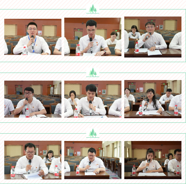 座谈会上,医院团委副书记翟阳,医院内科第四团支部书记黄厚键,广西优秀共青团员、内科第五团支部书记彭泽仡,第十七届“挑战杯”全国大学生课外学术科技作品竞赛广西“特等奖”指导老师邹敏,医院2020—2021年度青年创新能手、优秀论文奖代表杨鹏,明秀分院临床住院部团支部书记张芷齐,医院青年、博士代表刘迪,党支部组织委员张磊,医院规培生代表石宝媛等九位优秀青年代表分别作交流发言。
