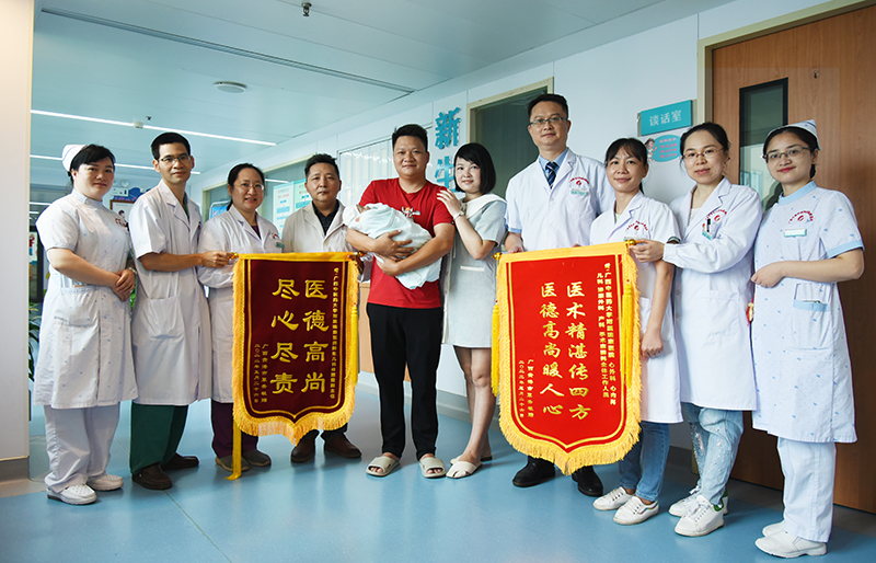 孩子恢复良好顺利出院,小覃夫妇送来锦旗以表谢意