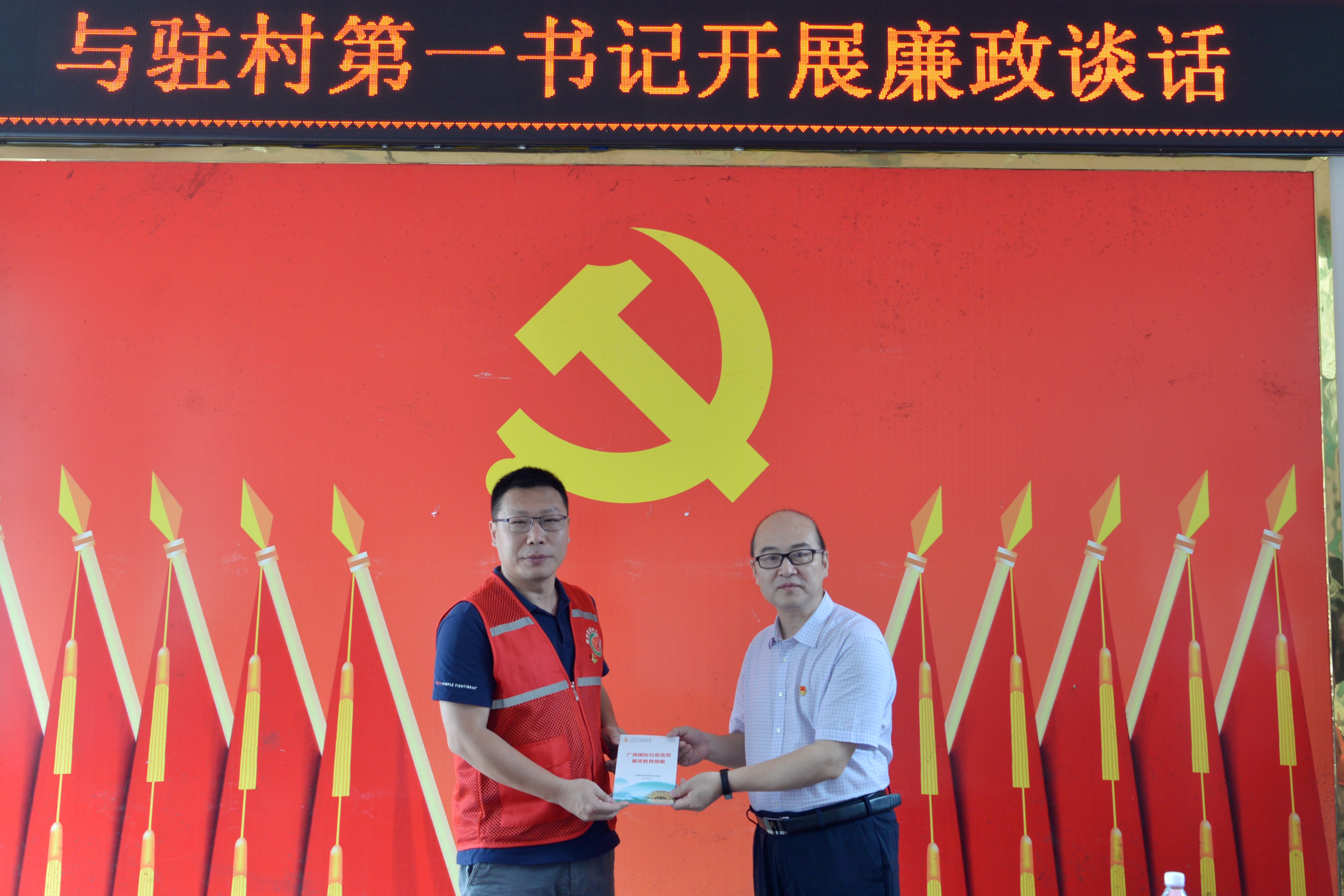 会上,吴光还与第一书记及驻村工作队进行了集体廉政谈话,并向其赠送《廉政家书》《警示教育摘编》及《“巡回医疗”健康手册》,提醒他们要安全廉政双防护,严格落实村委主体责任,守住安全“防护墙”,绷紧廉洁自律“弦”。同时,他还代表附属国际壮医医院党委向第一书记、驻村工作队及良安村老党员进行了“七一”慰问,并组织专家团队为其进行健康体检,鼓励他们继续发挥党员先锋模范作用,为乡村振兴作出更大贡献。