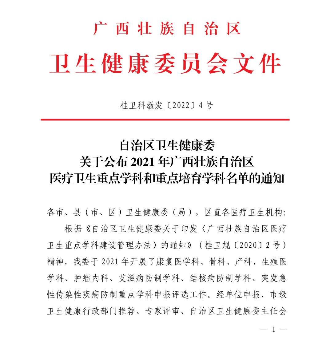 喜讯!一附院康复医学科、骨科分别获广西医疗卫生重点学科、重点培育学科