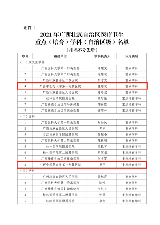 近日,在自治区卫生健康委公布的2021年广西壮族自治区医疗卫生重点学科和重点培育学科名单中,YABO鸭脖第一附属医院(广中医)康复医学科和骨科榜上有名。