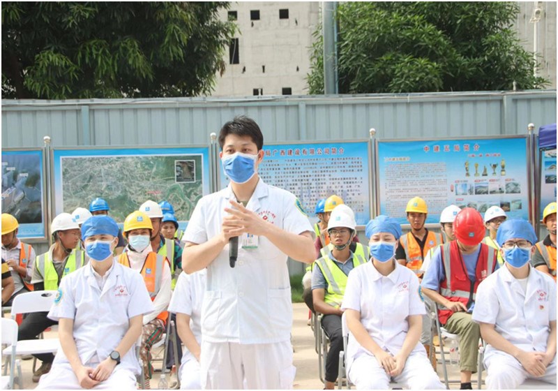 6月30日上午,一附院仙葫院区急诊科医疗团队赶赴中建五局承建的凤岭南苑二期公共租赁住房项目部,现场观看驻地医疗队的应急救援演练后,通过点评、讲解方式进行应急救援知识的指导、培训;急诊外科医师冯思华现场讲解关于高处坠落伤的救治注意事项,包含环境安全的评估,创伤出血止血包扎,止血带的正确使用,四肢骨折固定、脊柱损伤固定、搬运及避免二次损伤等相关应急措施;通过本次指导与培训,现场人员对高处坠落伤的应急处置有了全新的认识,同时也得到了中建五局全体员工的认可与支持。刘长栋安全总监说:通过本次交流、学习,公司的应急救援能力得到了有效提升。同时也加强了当地医疗与建筑施工单位的友好合作。