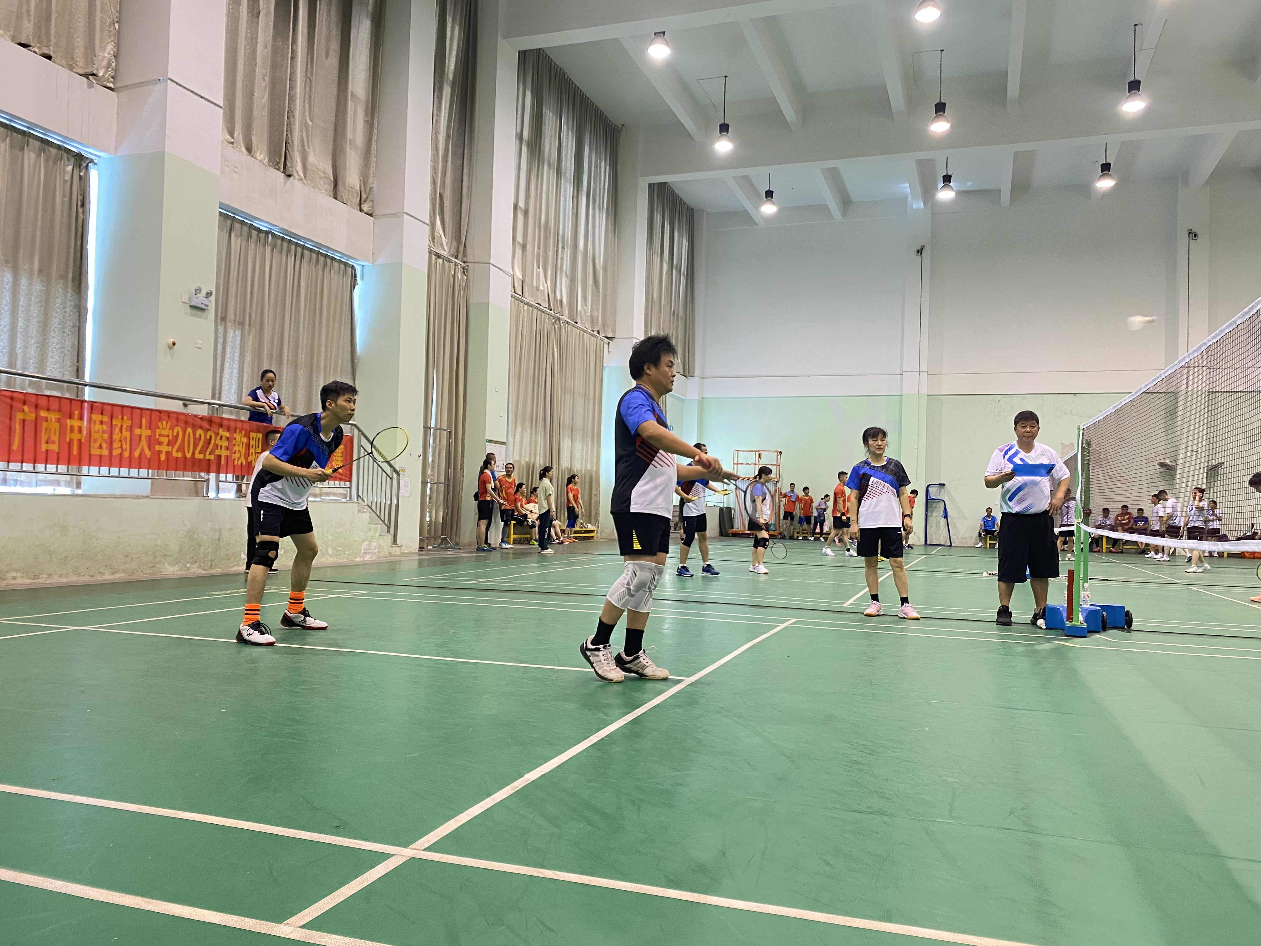 为增强职工队伍的凝聚力和战斗力,以良好的精神风貌迎接党的二十大召开,7月2日,YABO鸭脖2022年“羽动人生、‘球’得健康、喜迎‘二十大’启航新征程”教职工羽毛球比赛在仙葫校区体育馆举行。YABO鸭脖党委常委、纪委书记覃宇环出席并讲话。附属国际壮医医院党委副书记、工会主席吴光带队,15名职工参赛。