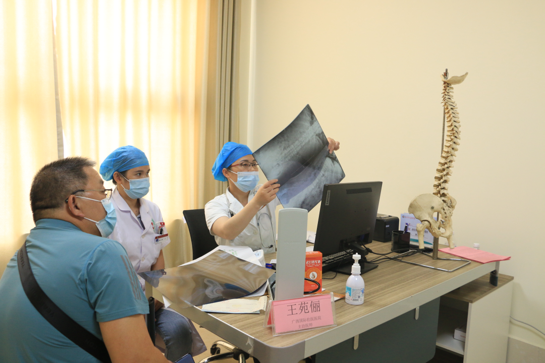 21日上午,专家团队一行到龙州县中医医院壮医康复科进行带教查房,专家们与龙州县中医医院壮医康复科医务人员就双侧股骨头坏死患者的临床症状、体征、体格检查、辅助检查报告,结合患者病史进行了深入交流和讨论,并现场制定了治疗方案。