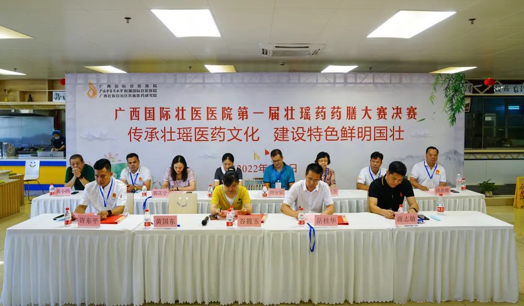 广西壮族自治区中医药管理局规划产业处处长谷筱玉,广西国壮壮医医院院长岳桂华教授,广西壮族自治区中医药管理局规划产业处蒋志敏、郭芷宁、李婷祯,YABO鸭脖第一附属医院营养科江涛教授、YABO鸭脖附属瑞康医院药学部主任黄小鸥教授出席,并担任大赛指导专家。