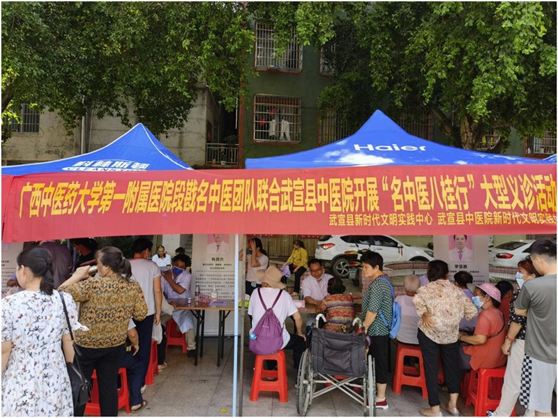 接着,为认真贯彻落实“不忘初心、牢记使命”为人民群众办实事精神,该团队联合武宣县中医院在武宣县广场开展大型义诊和健康宣教活动,宣传名中医落户武宣,真真切切让老百姓感受到足不出门就可以享受高水平、高质量的专家诊疗待遇,同时还免费赠送多种特色医院制剂给患者。现场约200人次的当地百姓踊跃参与,交口称赞。