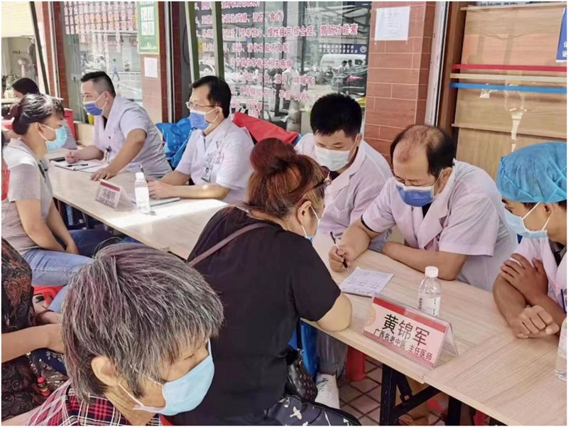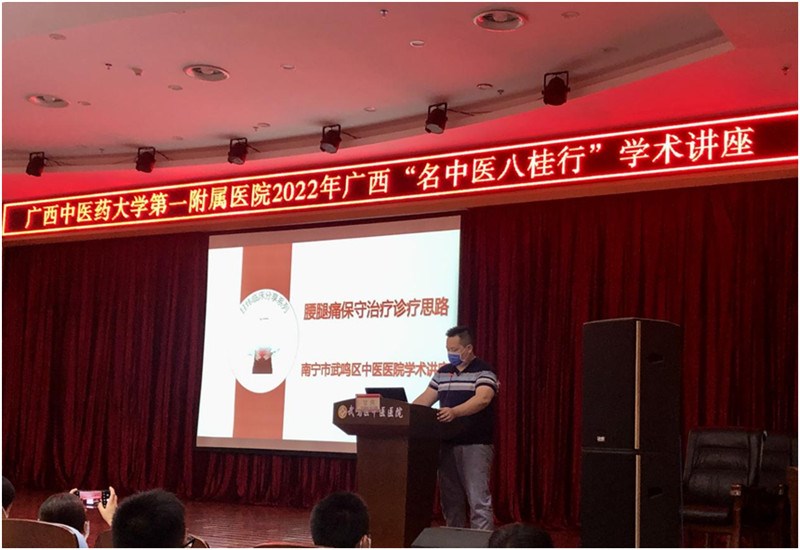 7月14-15日, 一附院广西名中医黄锦军教授团队以及肛肠科冯福明副主任医师、肿瘤科王同彪主治医师等8人再次前往南宁市武鸣区中医医院开展“名中医八桂行”活动,召开名老中医传承工作站建设会,开展教学查房、巡诊带教、学术讲座、病例讨论、现场义诊等,发扬传帮带精神,提高基层医疗机构中医推拿临床水平。