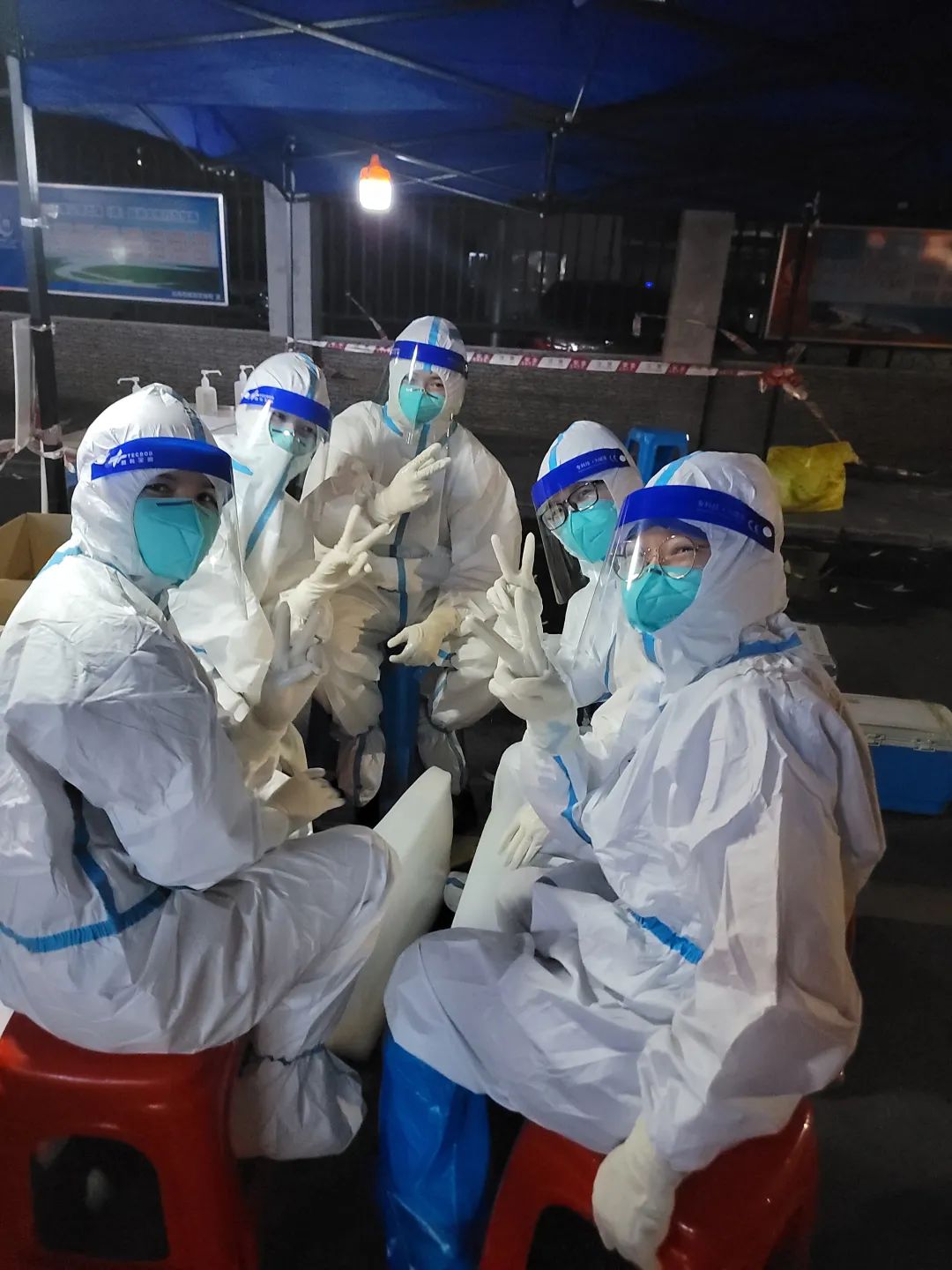 7月15日晚上8时34分,北海市地角社区沙坡街道。热风熏人,“大白”挑灯夜战,附近居民积极配合。支援北海的前两天,“大白”们每天工作到凌晨1时。
