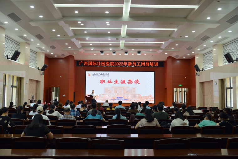 随后,秦祖杰以《职业生涯杂谈》为题,拉开了2022年新员工岗前培训的序幕。据悉,岗前培训为期5天,将通过理论、技能培训与实地参观相结合的方式,提升新员工政治理论、壮医药知识、医疗质量、疫情防控、廉洁从业等多方面能力。