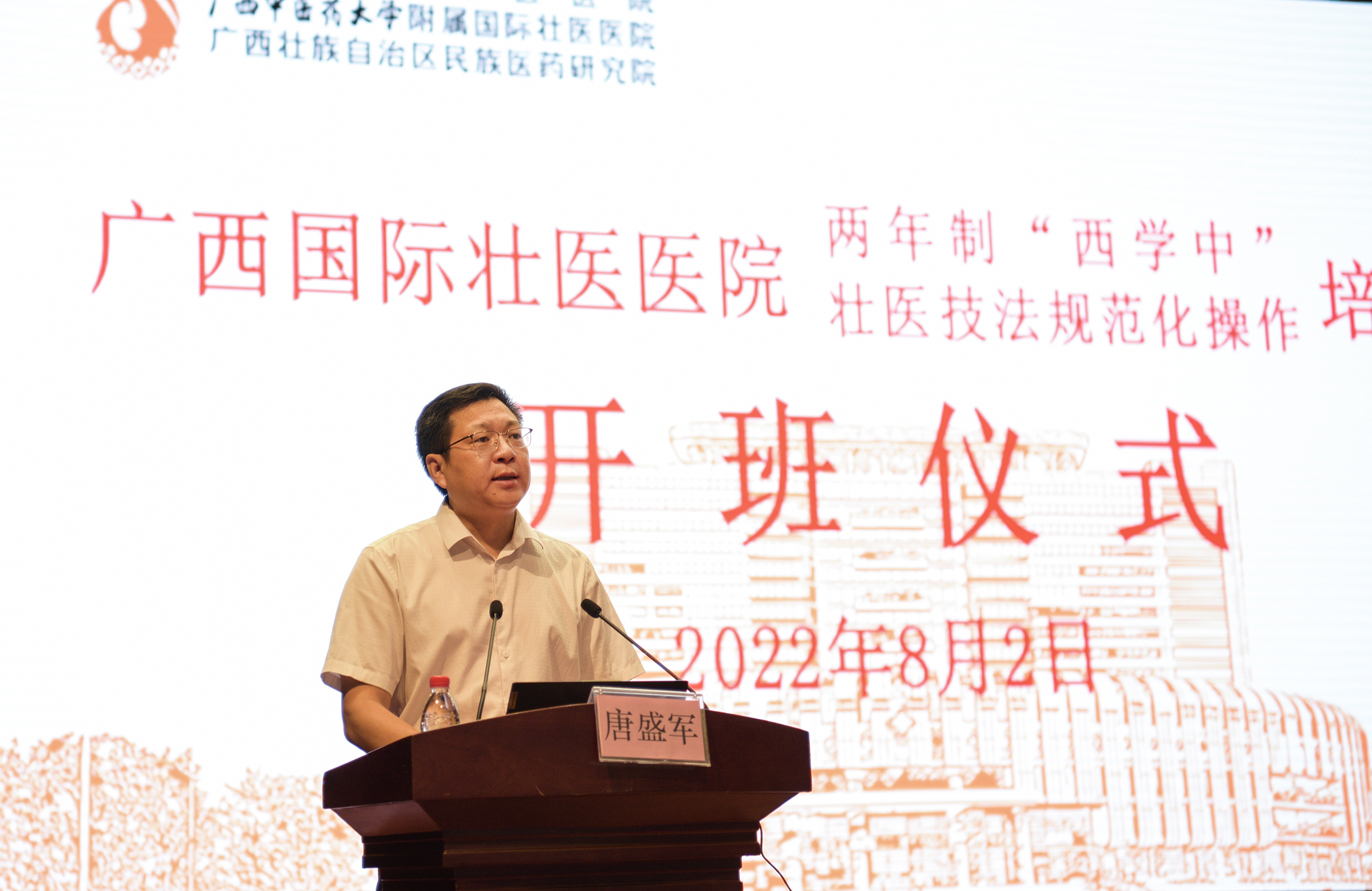 8月2日上午,2022年附属国际壮医医院二年制非中医类别医师学习中医药知识培训班、第三期壮医技法培训班正式开班。来自全区10多个医疗机构的35名临床医生到院参加培训。副院长唐盛军出席开班仪式。