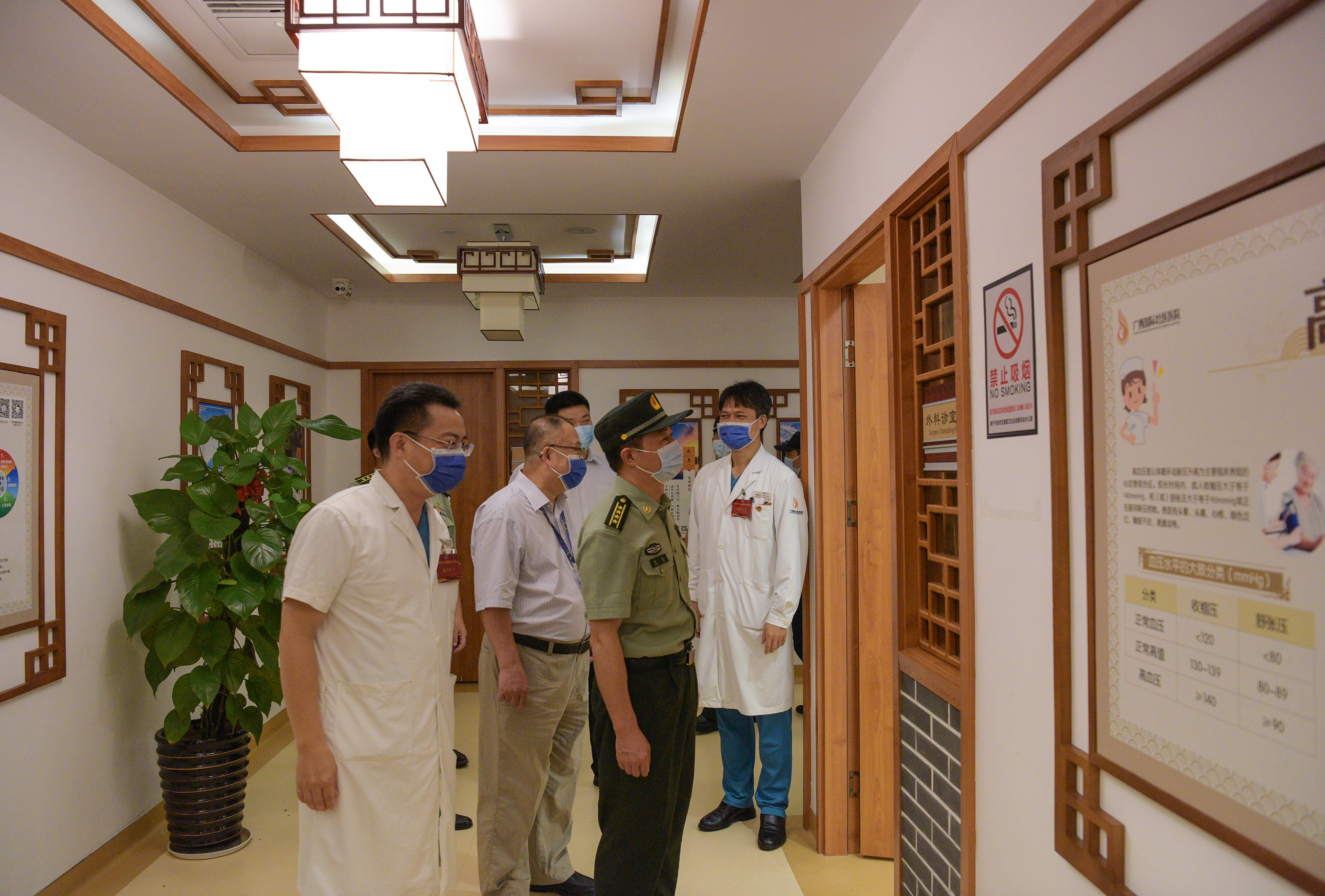南宁警备区参谋李龙强、良庆区区长李冉、良庆区人武部部长郝生发及健康管理中心相关负责人陪同。