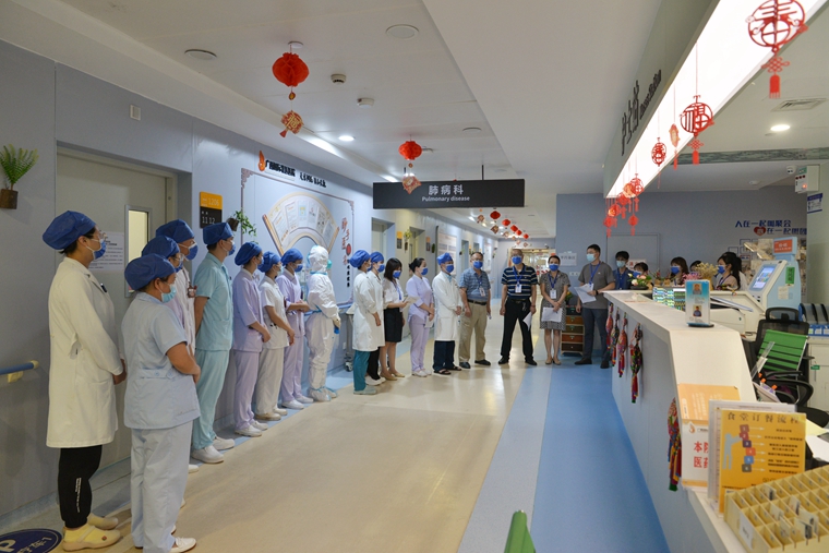 为落实南宁市新冠肺炎院感防控攻坚月行动工作,进一步提升医院应对突发新冠肺炎疫情的应急处置能力,8月17日下午,附属国际壮医医院在肺病科病区开展新冠肺炎疫情病区封控演练。本次演练由医院副院长李继清任总指挥长,医务部等相关职能部门人员到场观摩、指导。