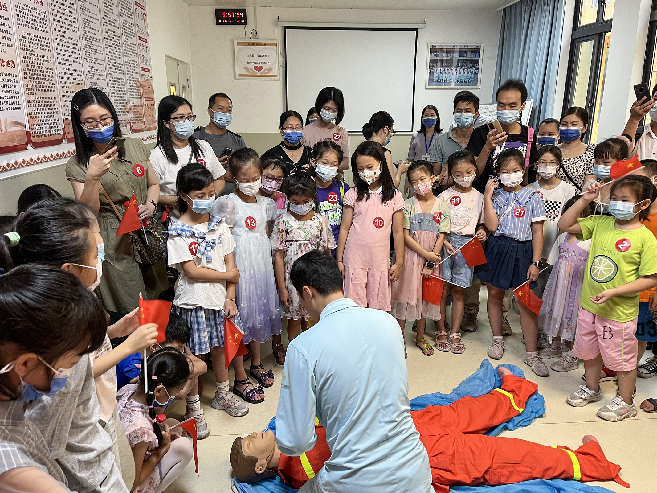 在急诊科急救课堂现场,小朋友们被“假人”吸引着,他们在认真学习心肺复苏技能、急救知识。