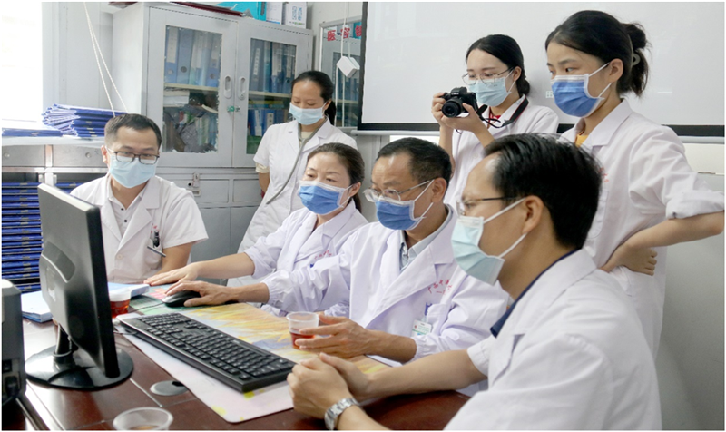 教学查房后,针对田东县中医医院的一疑难病例进行讨论,该患儿因发热入院,入院后查血常规提示血红蛋白72g/L,并且出现了不明原因的多器官功能损害,经多天治疗后患儿仍有反复低热、恶寒、头晕、乏力等症,故对此提出了讨论,在病例讨论过程中,各抒己见,当地医生各自表达自己的意见以及提出疑问,李伟伟及许靖教授针对患儿病史及目前病情提出下一步诊疗计划及诊断建议;李伟伟教授还从中医角度进行辨证论治,该患儿辨证属于气虚发热,予补中益气汤+石膏调节气机升降。对于疑难病例,通过中西医协同诊治,可以优势互补,拓宽诊疗思路,提高基层医疗单位疑难病例诊治水平。
