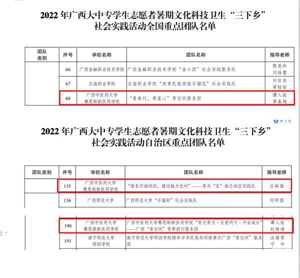 【喜讯】赛院三个社会实践团队入选2022年广西大中专学生志愿者暑期文化科技卫生“三下乡”社会实践活动重点团队