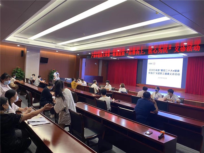 应南宁工行分行的邀请,以关爱职工的身心健康为主题,对职工开展健康义诊活动。9月22日上午,一附院组织妇科、康复科与治未病中心赴工行分行开展义诊活动。