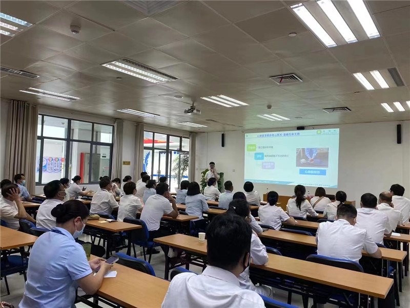 当天上午,活动准时在9点开始,活动的现场按照疫情防控要求有序进行落座。一附院温可华护士按照该公司的要求,先是通过理论的形式让大家了解到什么是急救,急救应该如何进行。随后,急诊科团队两位护理人员现场指导职工们学习和体验心肺复苏技术及海姆立克的操作方法。现场人员学习热情高涨,获得该公司一致好评。