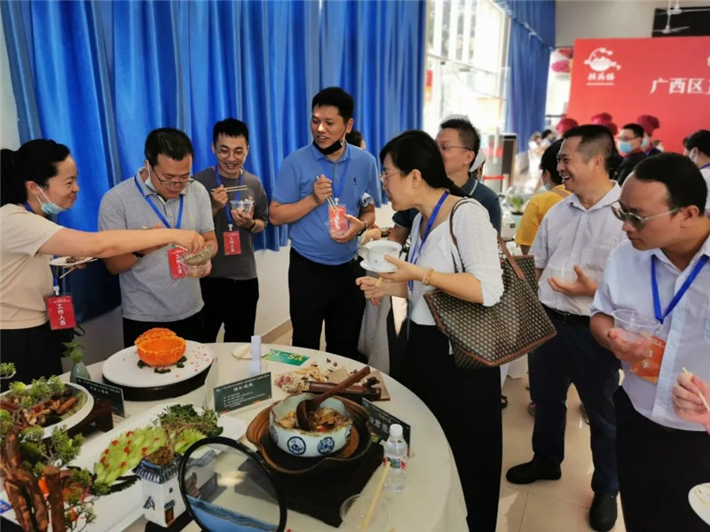 为助力健康广西,营造浓厚的中医药传统文化氛围,加强中药壮瑶药药膳文化学习及应用,探索中药壮瑶药药膳推广应用,推动全区中药壮瑶医药的传承创新与发展,来自区直医疗卫生机构的15支队伍在药膳知识大赛、药膳配伍设计、药膳现场烹饪等领域进行了激烈的比拼。以大赛为机,以药膳为媒,以药膳会友。自治区中医药局规划产业处处长谷筱玉,主任科员蒋志敏等领导、嘉宾参观一附院药膳展示区,对参赛作品给予了充分肯定。一附院领导高度重视本次比赛,副院长黄仲海亲临比赛现场为队员加油鼓劲,希望参赛选手能赛出水平,赛出风采,并在赛后勉励大家再接再厉,力争在总决赛中再创佳绩!