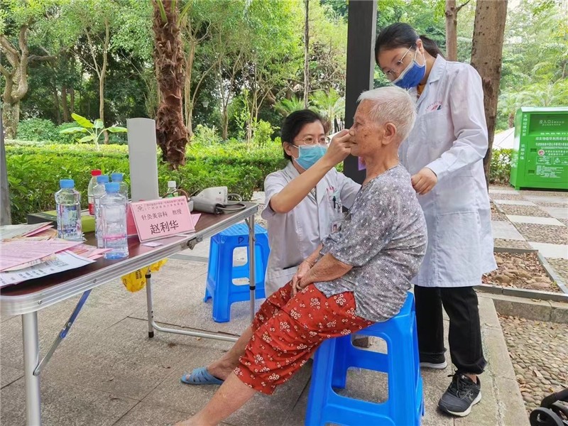 当天上午,活动准时在9点开始,现场按照疫情防控要求有序进行义诊。本次活动,一附院专家针对这小区人员以老年人为主,对常见引起的高血压等慢性病进行中医辩证诊治,除此之外,现场还有免费测量血压、耳穴贴豆、体验中医推拿等中医特色项目。特别是一附院带来的特色中医针灸,附近居民都来排队体验,以至于中午都还有居民等候。