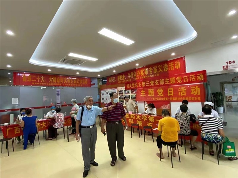 应青秀区政协新竹社区委员联络站的邀请,以关爱老年人的身心健康为主题,联合广西矿衰老学会对新竹社区居民开展健康义诊活动。9月30日上午,一附院组织仁爱分院针灸科、东葛院区内分泌科、心胸外科医务人员前往新竹社区开展义诊活动。