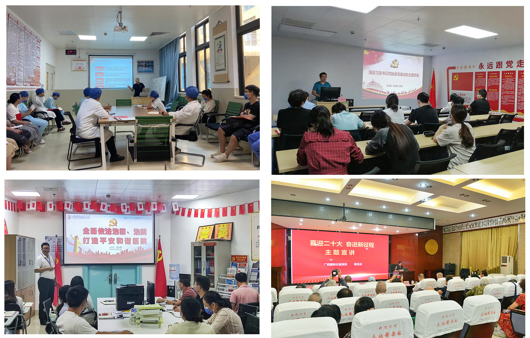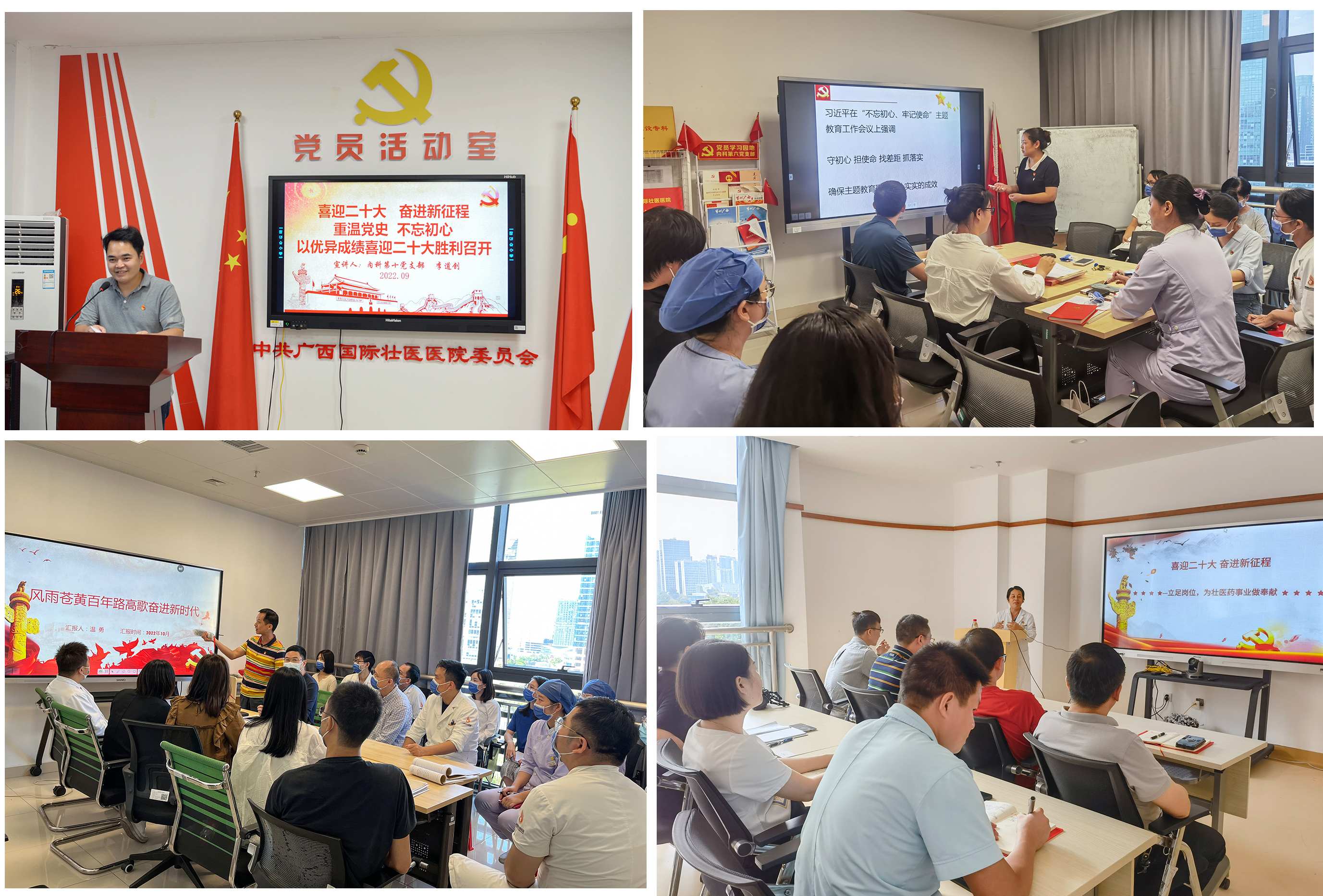 连日来,附属国际壮医医院各党支部通过专题讲座、报告会、主题党日、党课等形式,深入开展2022年度医院思想政治理论宣讲团“喜迎二十大,奋进新征程”巡讲。