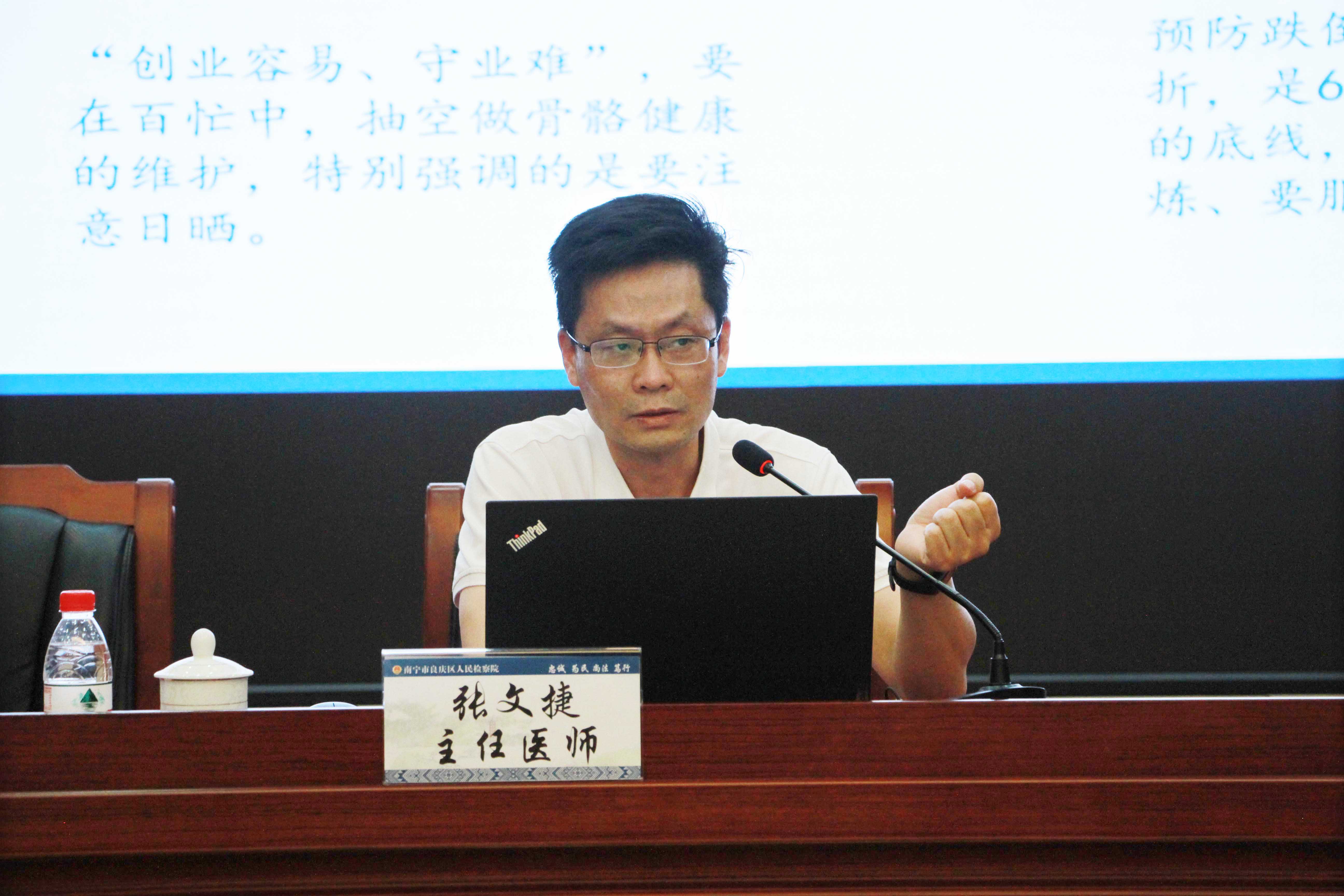 鉴于当下上班族由于伏案久坐造成的腰背疼痛等问题,广西国际壮医医院骨关节与脊柱科主任张文捷博士开展了主题为《脊柱健康——关注全生命周期骨骼健康》的授课。授课内容从现代人脊柱的进化及退化、腰背痛的现状、坐姿的生物力学、腰痛的治疗等方面,对因不良坐姿引发的相关疾病进行了专业、详细的科普。