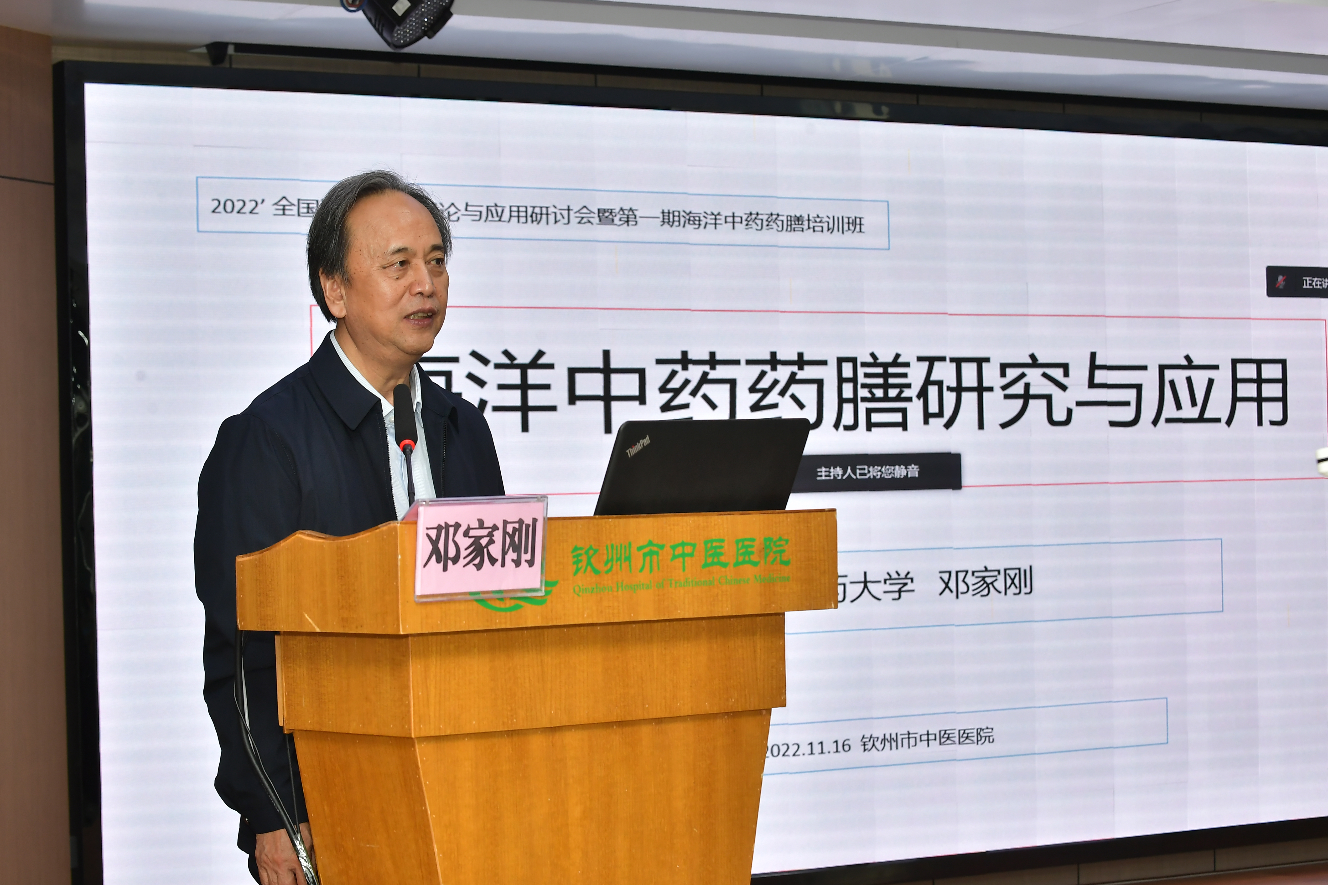 ▲邓家刚教授作《海洋中药药膳研究与开发应用》学术报告。