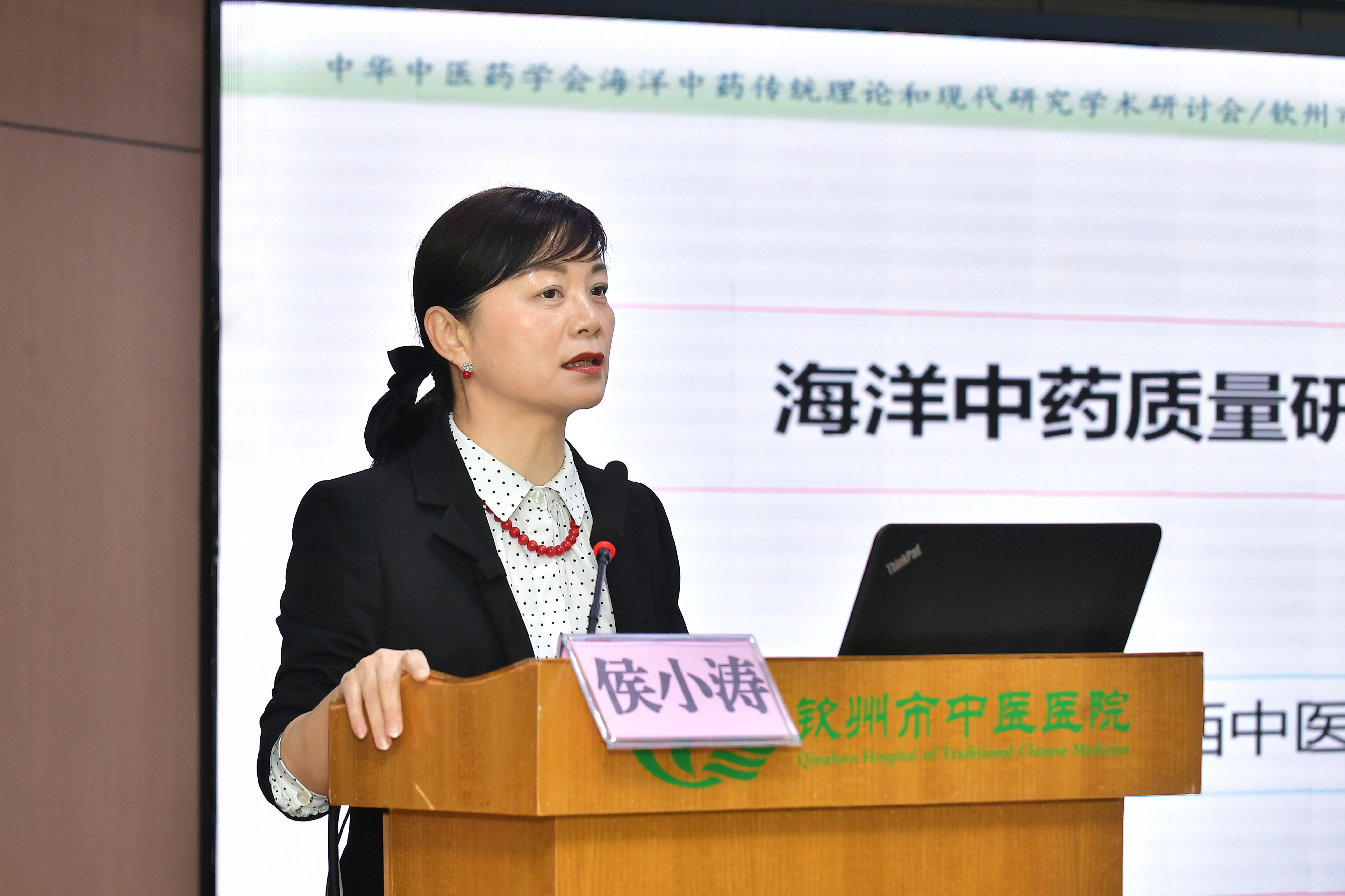 ▲YABO鸭脖侯小涛教授作《海洋中药质量研究体系的构建与应用》学术报告。