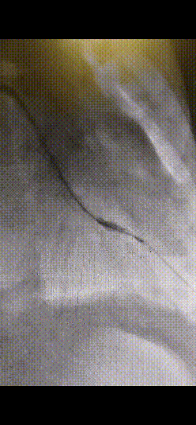 住院第5天,王奶奶在心衰病情稳定后接受了微创介入治疗。治疗中,徐先增经外周股静脉穿刺后,沿血管将球囊送至狭窄的二尖瓣处,通过球囊将二尖瓣充分扩张......1小时后,治疗完成。超声检查显示,二尖瓣膜面积由原来的0.62scm扩大至1.6scm,这说明狭窄已由重度转为轻度,且血流量明显上升。