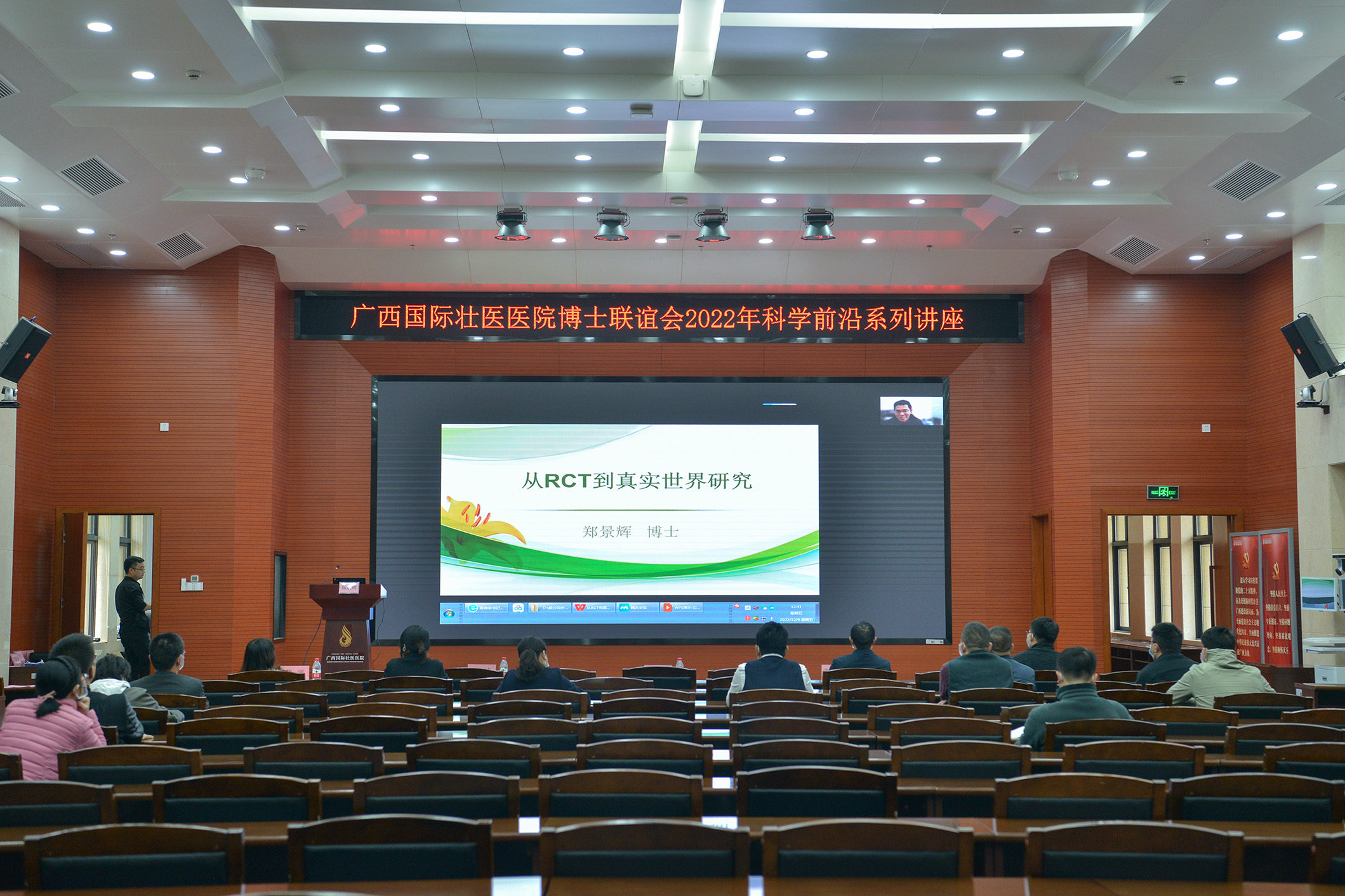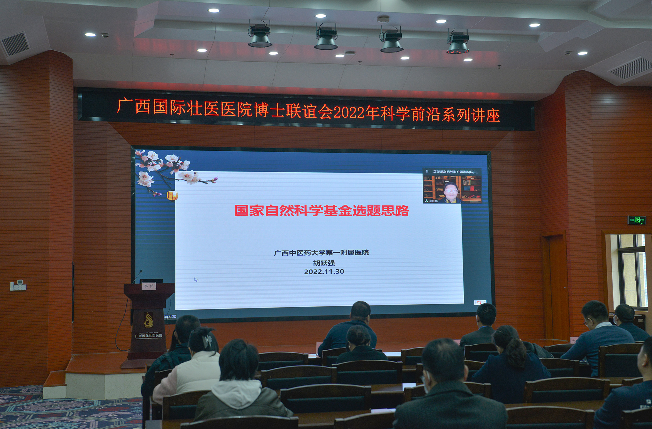 为进一步深入实施人才强院战略,推进医院人才队伍建设,推动医院高质量发展,12月9日,广西国际壮医医院举办博士联谊会科学前沿讲座,邀请YABO鸭脖学科建设办公室副主任郑景辉博士,YABO鸭脖第一附属医院党委委员、脑病科一区主任、中医内科学教研室主任胡跃强教授,以线上形式授课。院长岳桂华出席并讲话、副院长李铭主持讲座,30余名博士到场聆听、交流,未到场的博士及其他人员,通过直播方式收看了讲座。