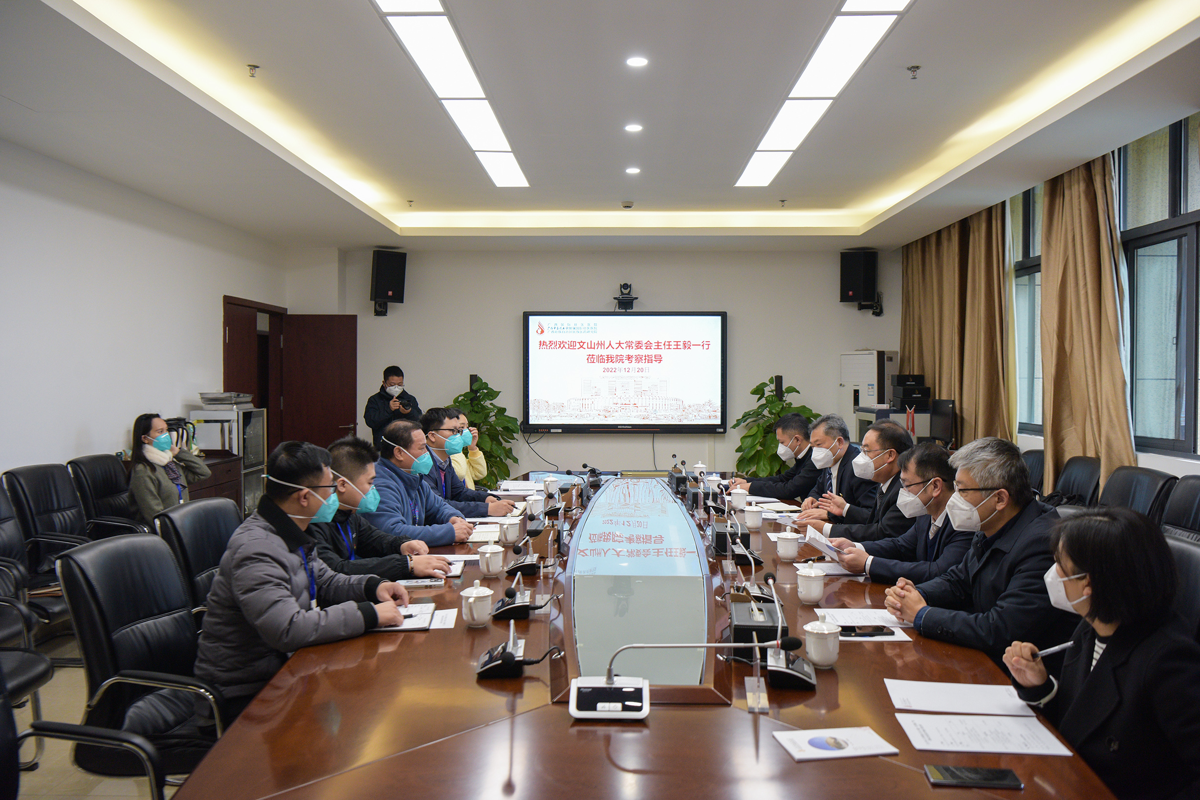 12月20日,云南省文山壮族苗族自治州人大常委会主任王毅带领考察组到附属国际壮医医院考察学习,为当地政策调整提供依据。副院长黄国东、李铭陪同。