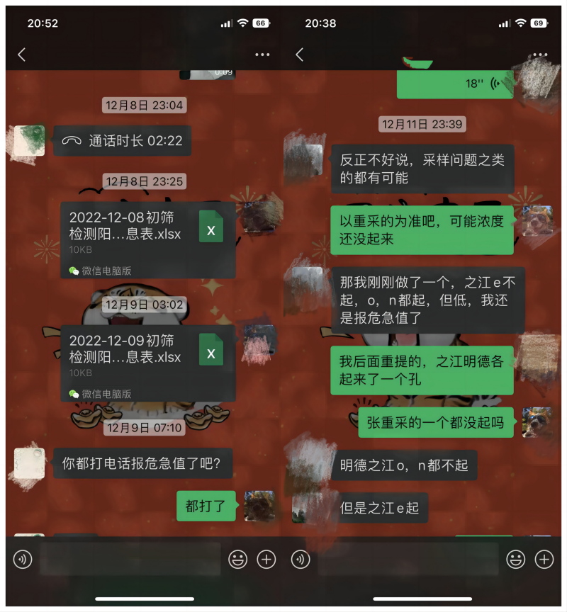 12月16日,半数以上的实验室人员开始身体出现干咳、发热等情况,但他们没办法后退,因为他们知道:“一般人感染后可以请假居家休息,可广大医务人员呢?在药品和抗原试剂短缺的情况下,核酸检测成为老百姓判断自身是否被病毒感染的唯一途径,即使实验标本量每日翻倍剧增也要守住这条战线!”罗靖克服了一家人发烧,两个孩子被感染,家人无人照顾等困难,在低烧的情况下,靠着两个退热贴熬过了当天的班次,而退烧后又主动投入工作中。