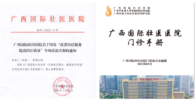 “天气”树立制度框架。医院每年根据“国家医疗质量安全改进十大目标”制定提升医疗质量安全的专项活动方案,不断完善相关管理规章制度,优化流程,制定奖惩措施并狠抓落实,推进精细化管理,提升医疗质量与安全。印发了《壮医门诊病历书写规范》《医院门诊手册》《开展违法违规使用医保基金突出问题专项整治工作实施方案》《医学检验、医学影像检查结果互认管理规定》《“提高医疗质量,改善医疗服务”专项活动实施方案》等多项规章制度,通过夯实制度建设,明确了我院执行重点突出岗位职责履行、工作量、服务质量、行为规范、医疗质量安全、医疗费用控制、医德医风和患者满意度等指标的绩效考核方案,建立了一套由医疗质量、运营效率、持续发展、满意度评价等4个维度构成的医疗绩效考核指标体系。