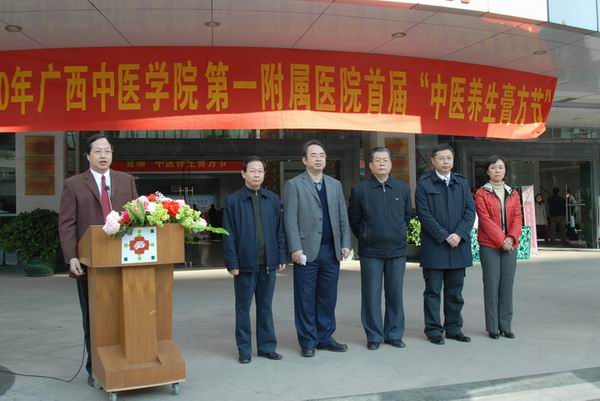 “膏方节”启动仪式在医院门诊裙楼举行。启动仪式上,嘉宾云集,出席的领导嘉宾有广西中医药管理局吴胜华调研员、国内著名中医膏方专家、南京市中医院副院长蔡旭兵博士,和医院院长黄贵华博士、李敏智书记、李成林副院长、卢健棋副院长等。吴胜华调研员作了热情洋溢的讲话,对本次首届“膏方节”活动,给予了高度的评价。