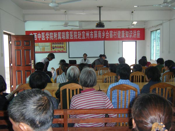 5月23日,自治区妇联主席王革冰、副主席周爱萍率自治区妇联定点帮扶组一行,到河池宜州市开展定点帮扶人口计生工作。瑞康医院作为此次活动的协作单位,积极参与到关爱妇儿健康的公益活动中。活动当天,瑞康医院张春副院长带领医疗服务部、妇科、乳腺科、儿科、男性科、骨科、消化内科、胸心外科、超声科等医院博士专家一行15人奔赴宜州市屏南乡合寨村开展活动。