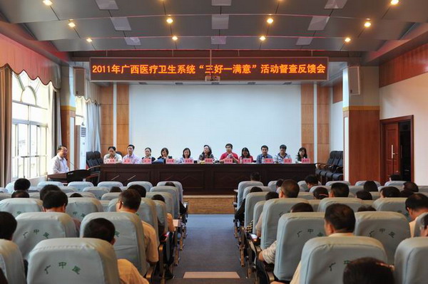 2011年11月4日,由广西壮族自治区卫生厅妇社处陈荔丽处长带领的“三好一满意”活动督查组一行11人莅临一附院,对一附院开展“三好一满意”、抗菌药物临床应用专项整治、平安医院等活动进行督导检查。