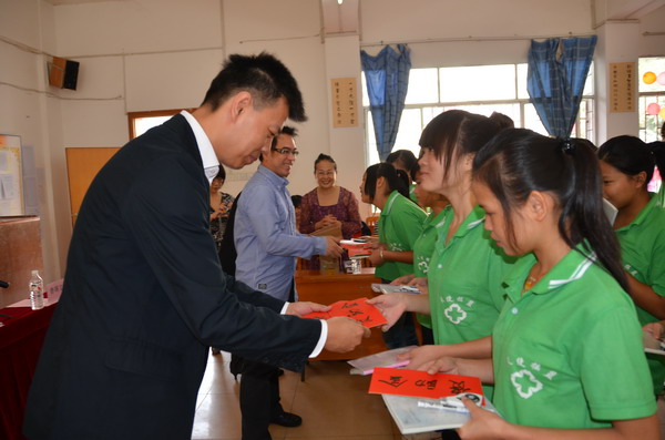 上海大班休闲健身服务有限公司领导为同学们发放奖品和助学金