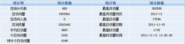 根据部署的网站流量系统统计,从2010年12月下旬开始上线,截止2011年11月29日,广西中医学院附属瑞康医院门户网站www.gxrkyy.com浏览量累计突破200万人次,达到2043440人次。