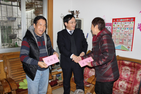 1月20日下午,为了让老职工、老党员和困难户过一个安定祥和的春节,制药厂但旭辉厂长、党委蒋林书记,副书记、副厂长、工会主席朱智德携工会委员到23户老职工、老党员家里进行慰问。