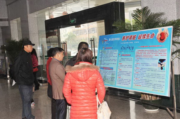 每年3月是全区教育系统学雷锋活动月,根据中央和自治区的部署要求,一附院党委号召全院党员干部职工开展以“学雷锋志愿服务”为主题的志愿服务活动。一附院肾病、风湿病科于2012年3月8日第七个“世界肾脏病日”举行了“关注肾脏健康”大型宣教义诊活动,为广大市民提供了免费健康咨询、体检、诊治及慢性肾衰中医饮食指导等服务。通过义诊、板报宣传等多种形式,让市民了解今年 “世界肾脏病日”的主题是 “捐献肾脏,延续生命”及肾脏健康的相关知识。