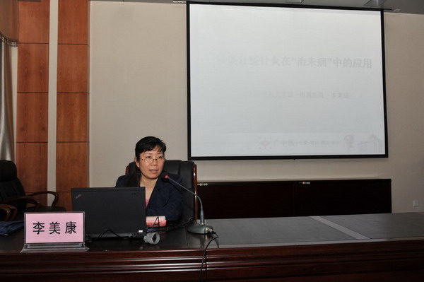 黄瑾明教授主讲的了《加速壮医理论与临床实践相结合是壮医药学术发展的必由之路-------开展壮医针灸理论与临床实践相结合研究的体会》的专题讲座,黄教授将自己从事壮医药挖掘整理、壮医药临床和科研等40余年的经验,及关于加速壮医理论与临床实践相结合的体会及成效倾囊相授,讲座生动有趣、深入浅出,授课内容丰富而精彩,教学互动热烈,学员们深感受益匪浅。12月15日上午学员们到我院壮医科进行了壮医基本技法药线点灸、壮医针刺术、壮医莲花针拔罐逐瘀疗法的临床观摩,培训学习班内容丰富,具有很强的实用性和可操作性,充分体现了壮医诊疗技术的“简、便、验、廉”特色,深受参会代表的欢迎。同时也吸引了区、市电视台、报刊等媒体前来采访。开幕式后,吕琳副局长、黄瑾明教授接受了广西电视台的采访。