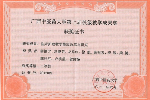 此外,教学课题“临床护理教学改革与模式”获YABO鸭脖第七届校级教学成果奖二等奖。此教学改革成果促进了学生综合能力的提高,并有数千名学生直接受益,培养的学生具有良好的专业综合素质和临床实践能力。