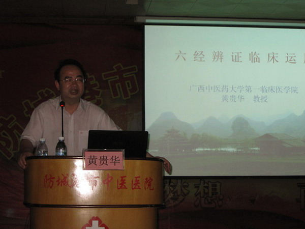 26日下午,在防城港市中医医院六楼会议厅,黄贵华院长作了题为《六经辨证临床应用》的专题学术讲座。黄院长以经典《伤寒论》的六经辨证为主线,用通俗易懂的语言,浅显实在的例子,阐述了中医经典方剂在临床中的应用。得到在场医务人员高度赞扬,许多西医师感叹的说:“听课后好像自己也可成为老中医了”。