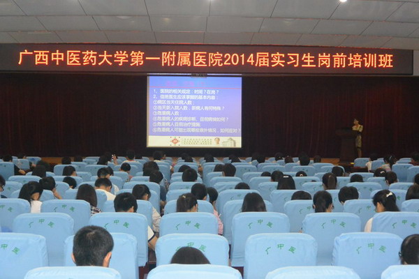 在培训会议上,第一临床医学院副院长钟远鸣为实习生作了岗前培训动员报告。钟副院长要求同学们进点后要严格遵守医院的规章制度及实习生管理制度,要把自己当做医院的一员,严格要求自己;要认真学习,努力把在学校学到的理论知识与临床实践结合起来,做一名优秀的临床实习生。