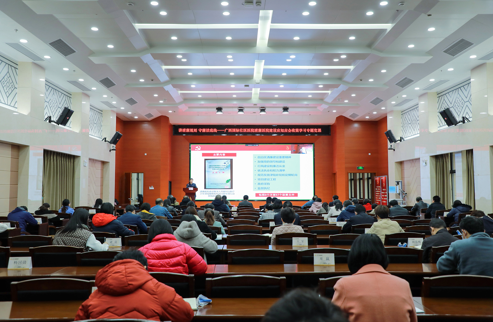 2月7日下午,附属国际壮医医院党委书记秦祖杰以《讲清廉规则 守廉洁底线》为题,为医院干部职工上了一堂清廉医院建设应知应会政策学习专题党课。院长岳桂华出席,党委副书记吴光主持会议。