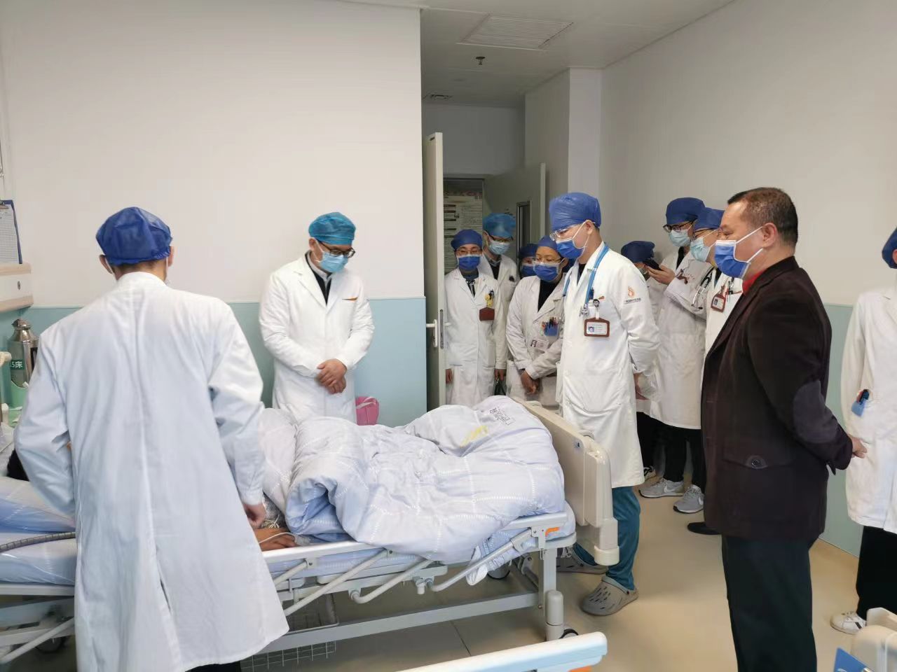 秦祖杰与脾胃肝病科医护人员一同查房