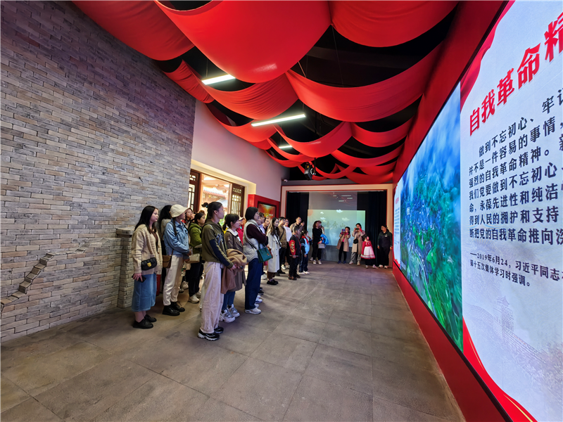 活动中,党员们跟随讲解员依次参观了中国共产党人精神谱系主题园的“两厅一廊一馆”,竹园及廉洁文化主题园。通过观看视频、照片,听讲解,穿插互动点播屏、全息投影系统、虚拟翻书系统等声光电高科技设备,以多维度、多层次、多融合的视听方式接受红色教育熏陶,加深对党的二十大精神的学习领会。强化党员身份意识和责任意识,坚定并践行中国共产党人的初心和使命。引导党员对新民主主义革命时期、社会主义革命建设时期、改革开放和社会主义现代化建设新时期以及中国特色社会主义新时代所形成的系列伟大精神进行了沉浸式学习。