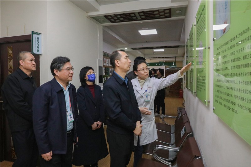 张锋一行实地走访了一附院东葛院区中医健康管理中心、院史馆、中医治未病中心。他们在中医健康管理中心了解了我院科学化、个性化制定健康服务理念及针对各类人群的优势中医健康管理方案;在院史馆参观了医院建院历程、中医药特色优势发挥、学科建设、人才队伍等情况介绍;在中医治未病中心,详细了解4P健康管理模式、“四象脾土六气调神”治未病理念及院内制剂使用情况,对治未病中心开展的中医体质辨识给予高度评价,并强调要把此项工作总结好,不断提升中医药特色服务内涵。
