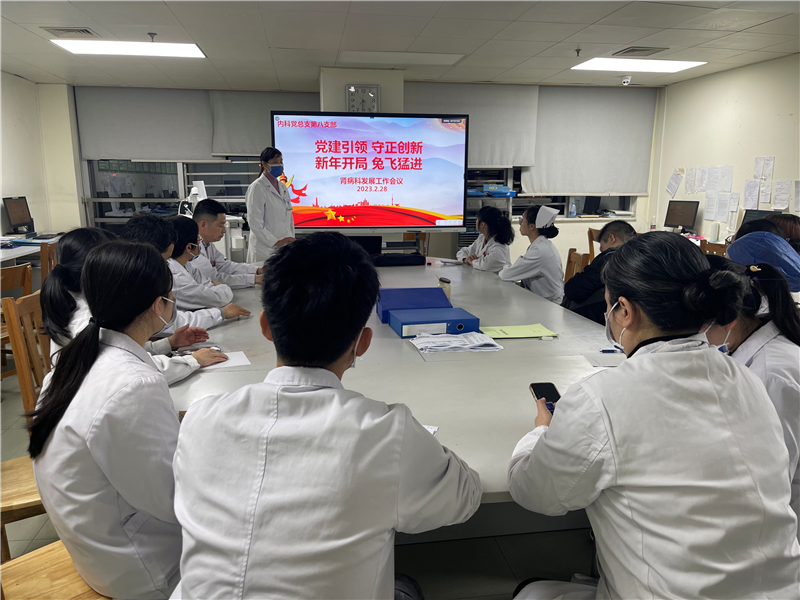 为全面提高党建工作引领各项业务水平发展,充分发挥党员先锋模范作用,激发党建活力,在一附院发展工作会后,秉承一附院工作宗旨方向,2月28日晚,一附院内科党总支第八党支部书记谢丽萍和科主任钟建组织全体党员、全科医生及护士长、骨干护士召开科室工作发展大会。大会邀请支部前书记、肾病科前任主任史伟同志参加会议。