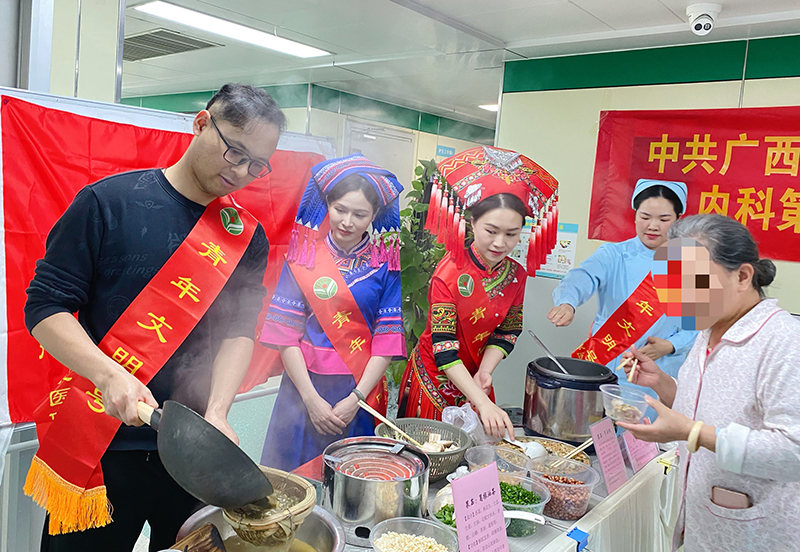 内科第四党支部(心血管内科一区)是一个温暖有爱、积极奋进且凝聚力十足的青年文明号集体,他们在支部书记何劲松的带领下,开创温情医疗服务的同时,还经常举办丰富多彩的活动促进医患友好关系。支部组织委员、护士长、青年文明号号长、广西青年五四奖章获得者黎燕同志表示,除了让患友住院放心、安心、舒心以外,还能让他们开开心心,就是医护人员最大的成就。